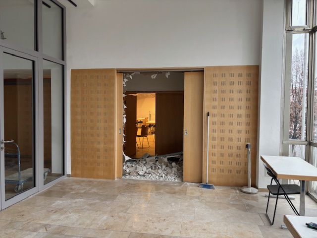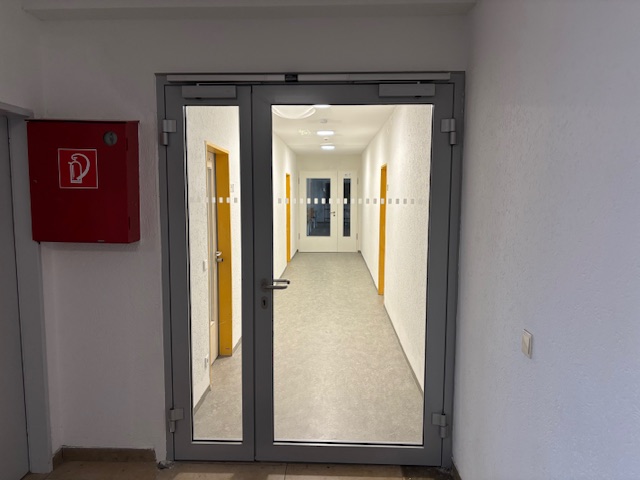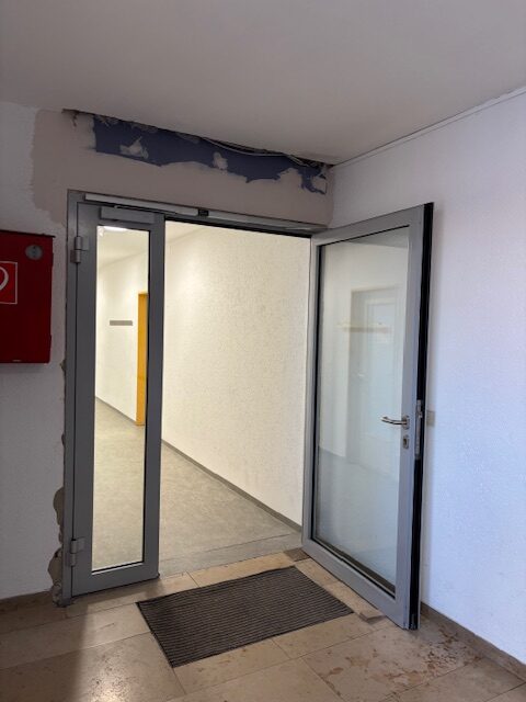 Heute wird die Öffnung für die neue Fluchttüre hergestellt. Sie dient künftig als Zu- und Ausgang des neuen Fluchttreppenhauses und stellt einen zentralen Bestandteil des geplanten zweiten baulichen Rettungswegs dar. Die Arbeiten erfolgen unter Berücksichtigung der statischen Erfordernisse.