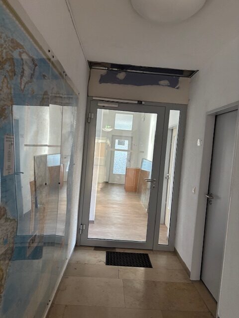 Im 2. Obergeschoss sind die ersten Veränderungen deutlich sichtbar: Die Decken wurden teilweise erneuert und mit modernen Akustikdecken ausgestattet, auch die Elektrik wird an vielen Stellen neu installiert. Als nächstes folgen die Böden sowie das Angleichen und Streichen der Wände – damit entstehen Schritt für Schritt helle und funktionale Räume mit einladender Atmosphäre.
