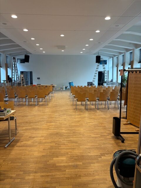 Mit viel Einsatz hat unser Technikteam die Veranstaltungstechnik im großen Saal zurückgebaut und so den Weg für den Einbau der Staubschutzwand freigemacht. Dadurch bleibt der Saal auch während der Bauphase für Veranstaltungen nutzbar. Hier ein Zeitraffervideo der Aktion.